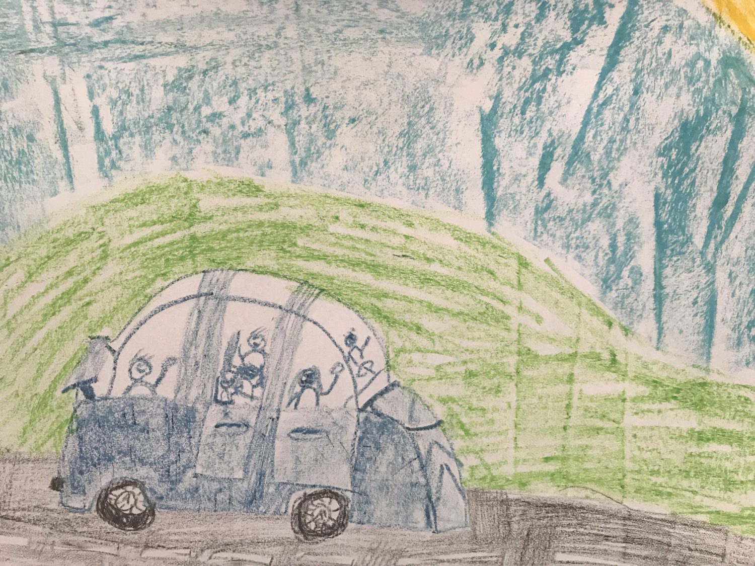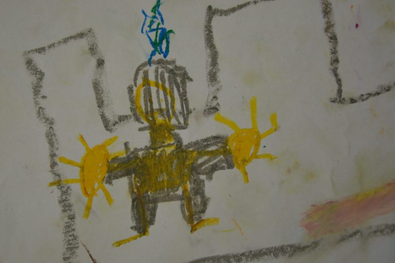 Zodra de grote vakantie in NL is begonnen richten we hier in la Perle d’Anrosey het Kinder Atelier in.Ooit ontstaan als spontane actie. En nu al voor het vijfde kaar op rij! Voor de kinderen die op doorreis zijn met hun ouders in onze B&B. We ontvangen vaak gasten en gezinnen voor één enkele overnachting, op doorreis naar hun vakantie bestemming in zuid Frankrijk. Als ze willen kunnen de kinderen bij ons in het atelier hun creativiteit vieren, met een zeer goede kwaliteit vetkrijt, zodat ook het dunste lijntje een zeggingskracht heeft, en papier in alle soorten en maten. We hangen alle tekeningen op, en gedurende de zomermaanden wordt het kinder atelier almaar voller. Zo inspireren de tekeningen telkens weer andere kinderen en zetten hen aan tot hun eigen creativiteit. Heel mooi om te zien hoe er ieder jaar op deze manier een soort interactie ontstaat tussen al deze kinderen, via hun achtergelaten kunstwerken. Een soort feestje van kleur en vorm die elk jaar haar eigen zeggingskracht heeft.