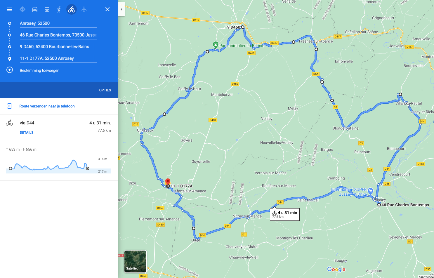 Voor een korte fietsvakantie in Frankrijk is dit beslist een aanrader. Direct vanuit onze Chambres d’Hotes kun prachtige fietstochten maken. Afhankelijk van de routes die je kiest kun je redelijk comfortabele tochten maken of juist pittige met meer hoogtemeters. Kies voor je fietsvakantie in Frankrijk la Perle d’Anrosey als thuisbasis. Dan heb je gelijk een zeer aantrekkelijk verblijf in een groot adelijk landhuis met een parkachtige tuin met schitterend uitzicht. Er is een afgesloten stallingsplaats voor fietsen beschikbaar en een mogelijkheid op electrische fietsen op te laden. Na een dag sportief fietsen is het hier heerlijk ontspannen met een glaasje op het terras en kun je ‘s avonds mee eten aan de Table d’Hotes..